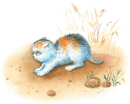 Были брат и сестра – Вася и Катя; и у них была кошка. Весной кошка пропала. Дети искали её везде, но не могли найти. Один раз они играли подле амбара и услыхали – над головой что-то мяучит тонкими голосами. Вася влез по лестнице под крышу амбара. А Катя стояла внизу и всё спрашивала: