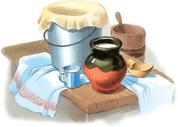 Мать пошла в избу, разделась и вышла на двор с полотенцем и подойником. Она села под корову, обтёрла вымя. Господи, благослови! – стала доить корову; а дети сели кругом и смотрели, как молоко брызнуло из вымя в край подойника и засвистело у матери из-под пальцев. Надоила мать половину подойника, снесла на погреб и отлила детям горшочек к ужину.