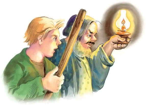 Купец с работником уже стали выходить. Слышат – в углу кто-то чихает. «Чих! Чих! А чих!» Вернулись и поймали вора.