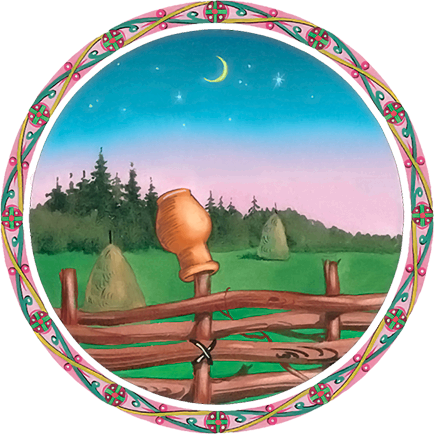 Он отошёл к сторонке, разбежался, ударил в подойник, разлил молоко и зашиб старуху.