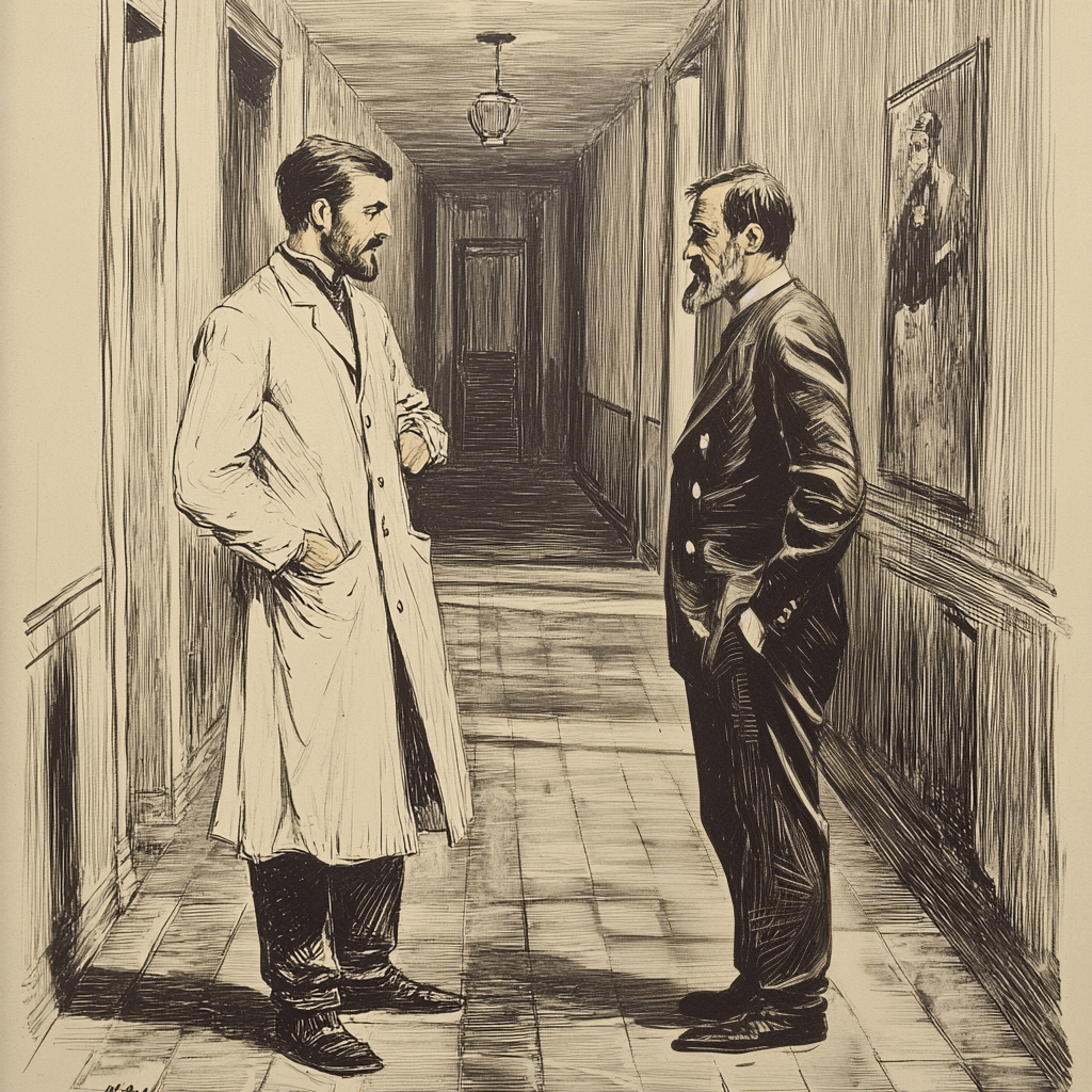 Когда доктора остались одни, домашний врач робко стал излагать свое мнение, состоящее в том, что есть начало туберкулезного процесса, но… и т. д. Знаменитый доктор слушал его и в середине его речи посмотрел на свои крупные золотые часы.