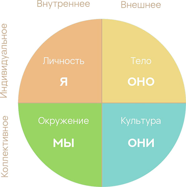 Сектор “Мы” – это культура, история страны и общества, неписаные социальные правила, смыслы, передаваемые потомкам с воспитанием. Коллективное внутреннее.