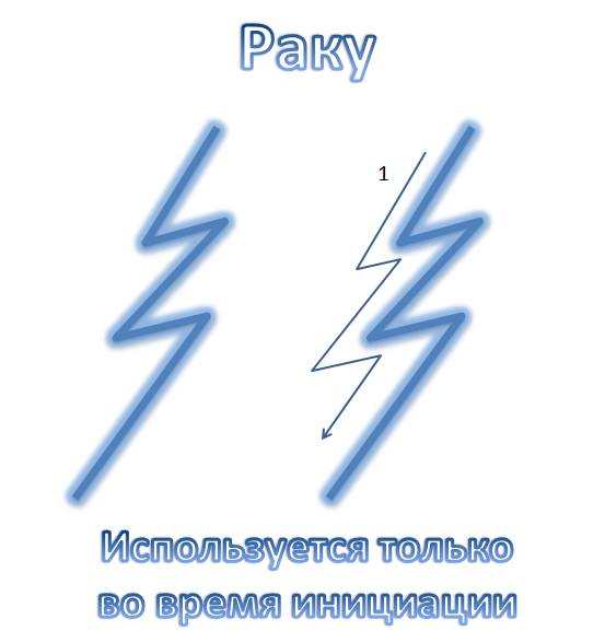 Мастерский символ «Раку» используется только во время инициации для того, чтобы разъединить поле Мастера Рейки и инициируемого.