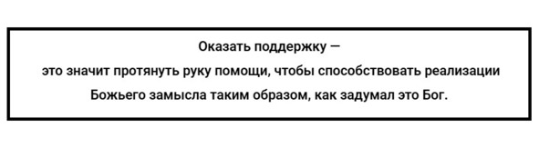 Если ободрение – это наш эмоциональный вклад в других, то поддержка – это вклад активный. Конечно же, ободрение может включать в себя какие-то действия, а не только слова. Однако разница между поддержкой и ободрением заключается в том, что, оказывая поддержку, я становлюсь непосредственным участником того, что происходит у человека, а не сторонним наблюдателем, который просто желает добра.