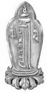 Значение звучания AUM MA NI PAD ME H M (АУМ! Драгоценность в лотосе HŪM) очень важное, и очень почитаемо (см. рис. № 12) в буддизме на Тибете, по Уодделлу. Заметим, что как записано в «Мани Кахбум»[2], этот амулет приносит великое счастье, процветание, знание, а также способы избавления от врагов и всех зол на земле, в то время как благочестивый твердо верит, что они размышляют над волшебным предложением в рамках их молитвенного колеса, днем и ночью они оберегают серии возрождений, в противном случае это неизбежно, и когда их жизни оборвутся, они сразу пройдут в рай Будды,