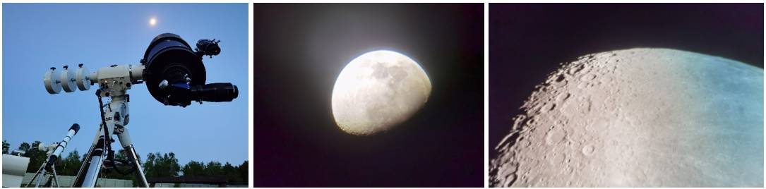 Для наблюдения в телескоп за небесными телами было достаточно светло, поэтому нам предложили пройти в помещение и лицезреть невероятные картины звездного неба на экране проектора и, заодно, распить чай с печеньями. Пока вся группа досматривала фильм, за окном уже стемнело, поэтому я улизнула и полностью оккупировала все телескопы. А один из ученых, настраивая телескопы, рассказывал мне о луне и созвездиях. Луна через телескоп казалась так близко, словно на расстоянии протянутой руки, были видны её кратеры и перемещения по траектории вокруг Земли. Я была окружена такой красотой и загадочностью, что сложно было перестать наблюдать за этими великолепными объектами. Жаль, нам в школе не преподавали астрономию. Ведь это безумно интересно и красиво!