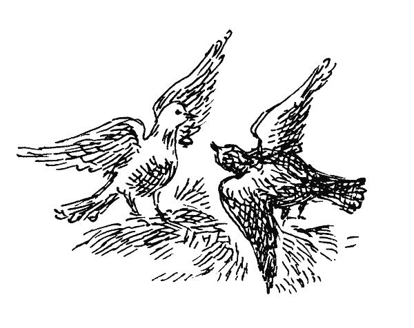 Раз пришли они к перекрестку; две совершенно одинаковые дороги шли в разные стороны, и дети не знали, которую из них выбрать. Вдруг они услыхали пение двух маленьких птичек на дороге влево.