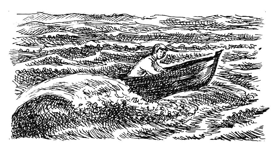 Бьерн был так поражен всем происшедшим, что начал сам себя спрашивать, уж не толкнул ли он и вправду своего сводного брата? Честному мальчику трудно понять, как другой мальчик может лгать. Но когда корабль «Аполлон» все больше и больше удалялся от него, когда наконец стало видно только небольшое белое пятнышко на горизонте, тогда только Бьерн заметил, к своему ужасу, что он был один в маленькой лодочке в открытом море. Большие рыбы плавали вокруг челнока, дельфины пускали струи воды, тюлени высовывали из воды свои темно-коричневые собачьи морды. Никто из них не мог ему помочь.