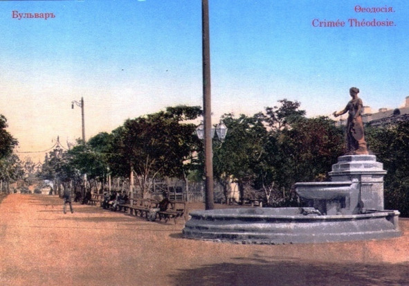 Феодосия. Фонтан «Доброму гению». Старинная открытка, начало ХХ века. Личный архив И. Г. Топорова.