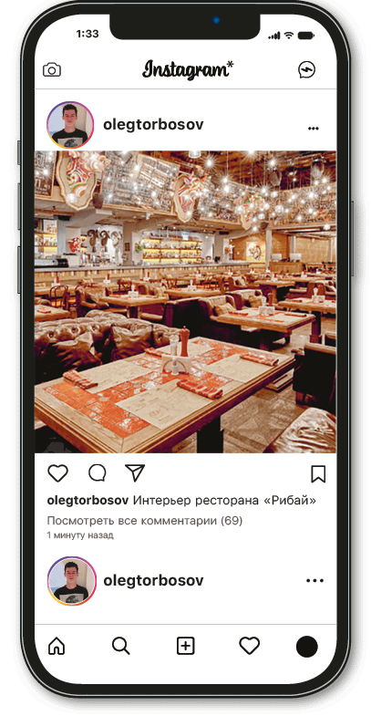 «Рибай» располагался на первом этаже нового современного здания сразу за Казанским собором. Тут был целый куст проектов холдинга Ginza Project. На шестом этаже работал пафосный ресторан Terrassa с отличным видом на собор, напротив входа стояла круглогодичная застеклённая веранда «Мамалыги».