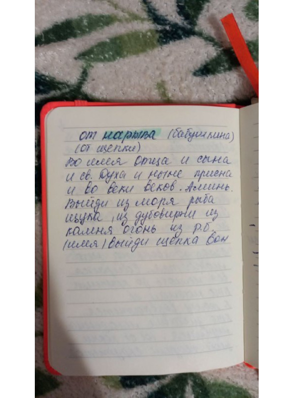 Рожа красная, рожа белая, рожа серая, рожа черная, рожа глазовая, рожа часовая, рожа минутная, рожа секундная выйди вон, выйди вон у раба божьего (имя).