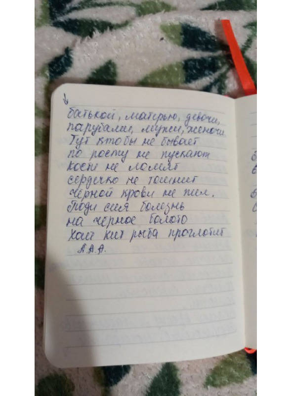 Ехал Иисус Христос на сивом коне. Конь споткнулся – Иисус Христос овернулся. Вернутся хорты с черного огня, с черного зрачка боль сгоняти, помощь давати. Як я словами, то господь духом, приступи мой дух, излюби.