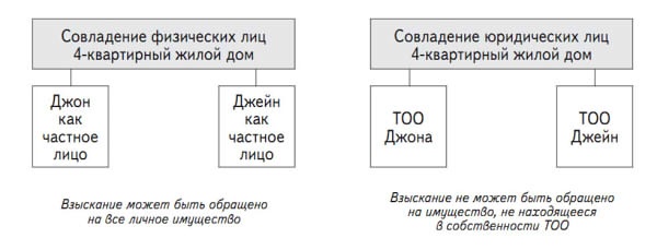 Хотя обстоятельства могут быть самыми разными, позвольте все же дать несколько рекомендаций о наиболее предпочтительных формах собственности. С точки зрения защиты активов (эта тема будет рассматриваться в одной из последующих глав) не может быть ничего лучше товарищества с ограниченной ответственностью. Одно из основных преимуществ ТОО состоит и в том, что выбор такой формы собственности не имеет каких-то специфических налоговых последствий. С точки зрения налогообложения ТОО может рассматриваться по вашему выбору и как личная собственность, и как партнерство, и как корпорация.