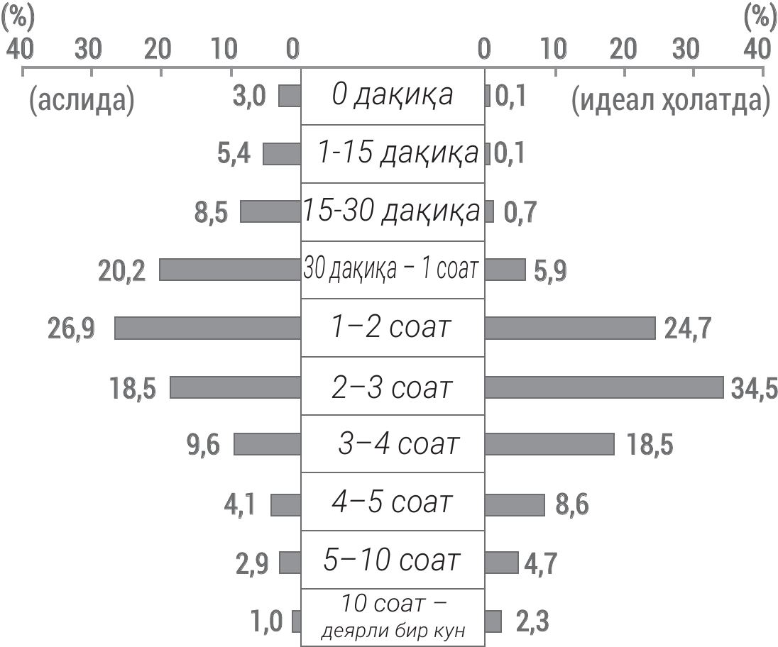 Агар йўлга ва ишнинг ўзига сарфланадиган вақт чиқариб ташланадиган бўлса, у ҳолда оталарнинг фарзандлари билан мулоқот қилиш учун жудаям кам вақти қоляпти.