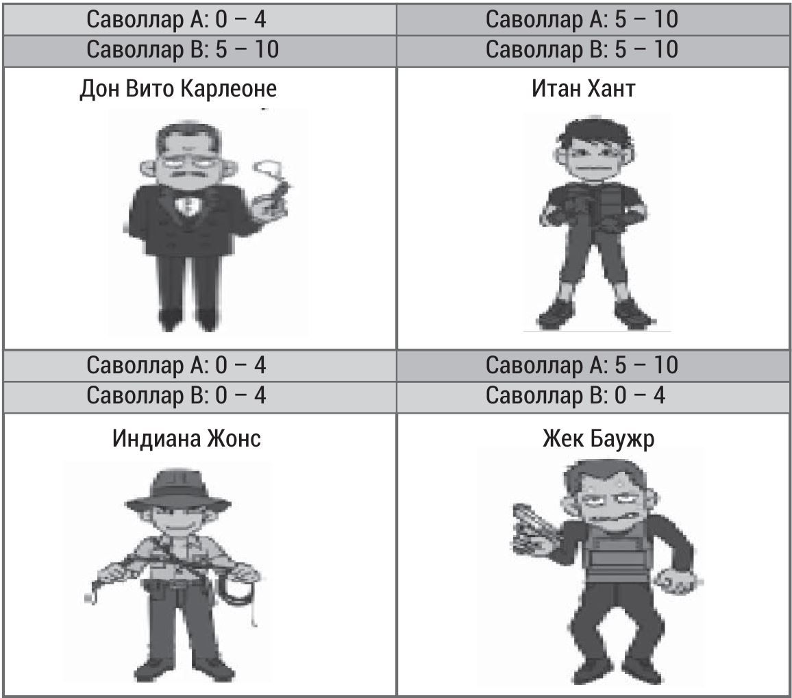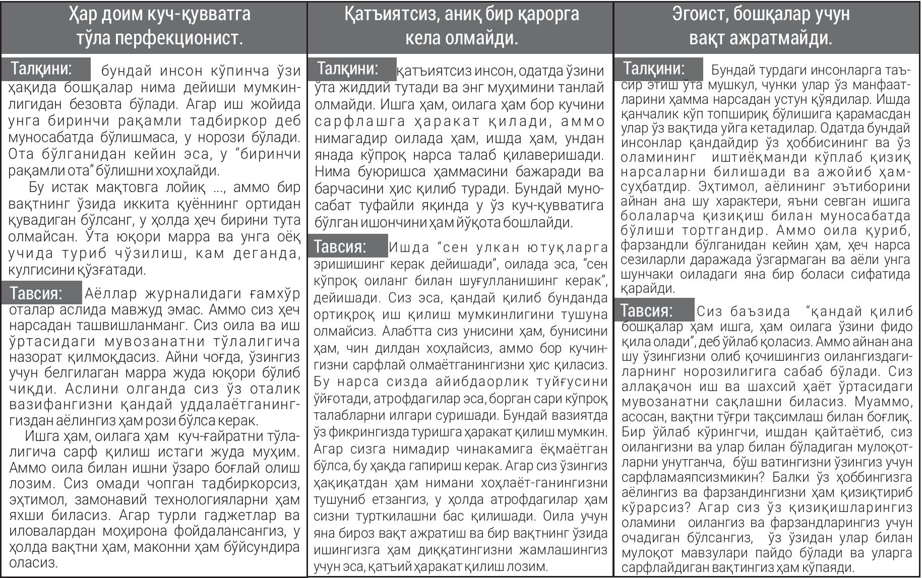 (Ҳар бир тип ҳақидаги талқинлар 29-30 бетларда)