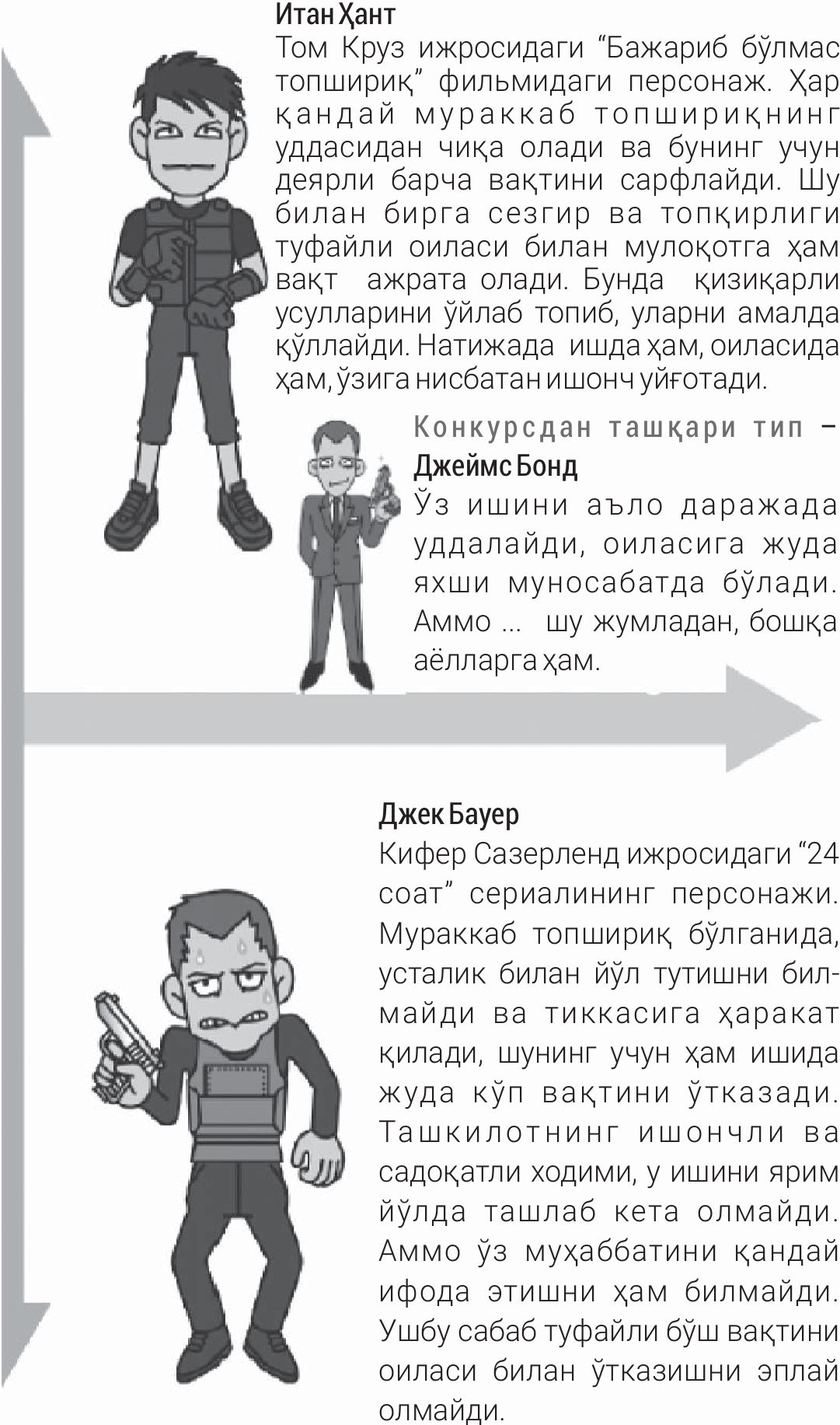 Яна озгина вақтни бўшатиш учун эса, «бор кучинг» билан ишлашингга тўғри келади. Чунки бу аҳволда узоққа бора олмайсан.