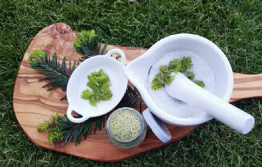1 EL Tannenknospen • 1 EL Birkenknospen • 1 EL Brombeersprossen • ca. 50 g Natursalz
