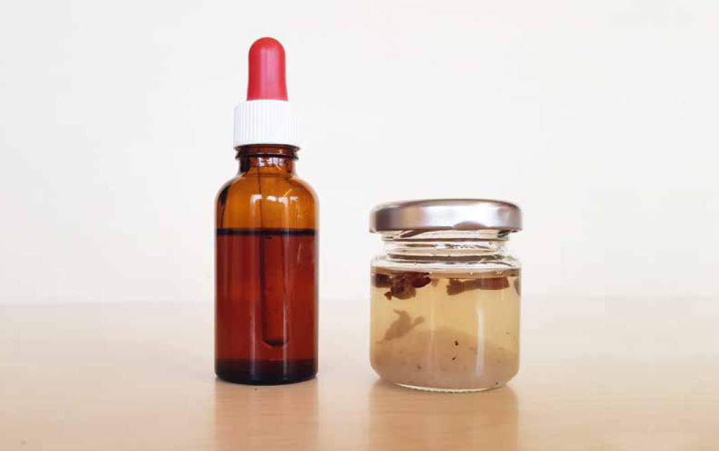 1 Teil Knospen (Schwarze Johannisbeere) • 3 Teile Alkohol, 80–90 Vol.-% • 3 Teile pflanzliches Bio-Glycerin • 3 Teile Wasser