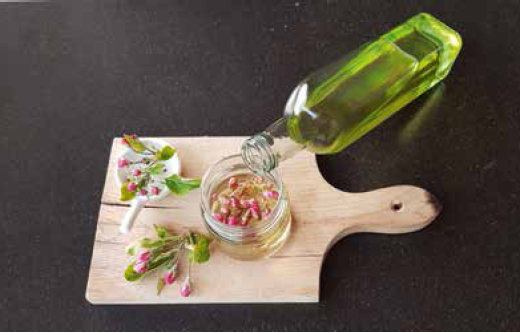 1 Fingerhutvoll Apfelblütenknospen • 100 ml Traubenkernöl