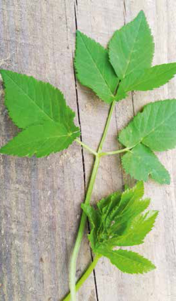 Inhaltsstoffe: Flavonoide, Bitterstoffe, Gerbstoffe, Cumarine, Chlorophyll, ätherisches Öl, viele Mineralstoffe, besonders Kalium.