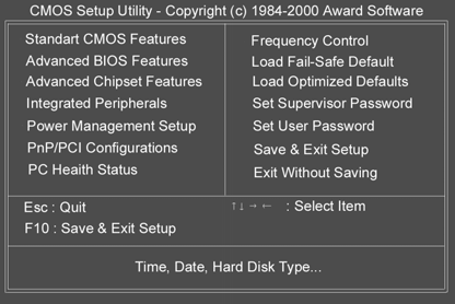 Наиболее распространенная версия BIOS – это AWARD BIOS 4.5х. Конечно, существует множество подверсий, но они имеют единую структуру разделов и отличаются лишь поддержкой различных процессоров и чипсетов. Поэтому мы подробно рассмотрим основные разделы именно этой BIOS.