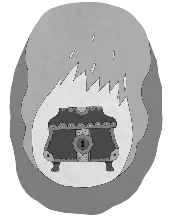 Манебжи отвернулась к бочкам и подула на догорающие свитки. Огонь, словно напитавшись ее дыханием, сложился в два красных бутона. Их лепестки раскрылись, и алчущие новой жертвы языки стали переползать по бочкам и въедаться в дерево. Сквозь щели между досками уже сочилась золотая краска. Не успела первая тончайшая струйка показаться, как она тут же загорелась и расплавилась, порождая новые языки.