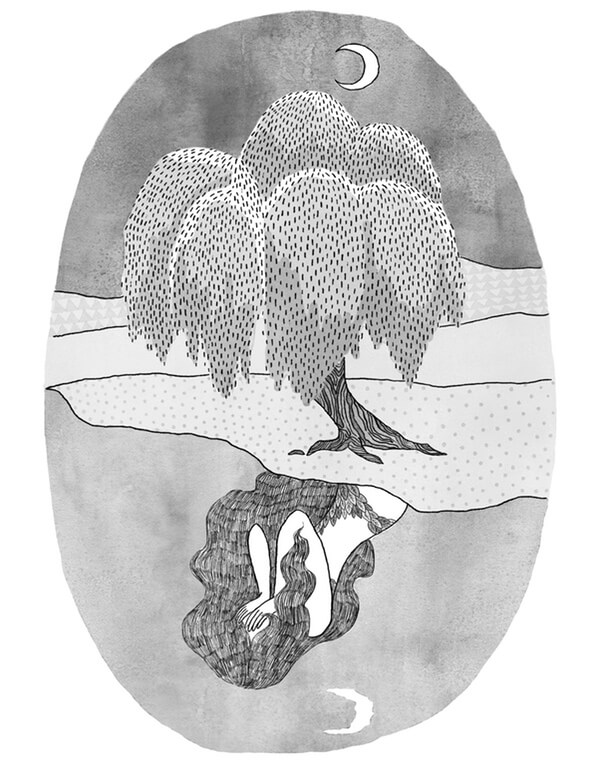 Он затих и стал ждать. Ива шелестела над головой. Поместье горело. Ответа не было. Он успел моргнуть несколько раз и несколько раз облизнуть губы, прежде чем услышал знакомый журчащий смех. Казалось, она была у него за спиной. Он вздрогнул и оглянулся: никого.
