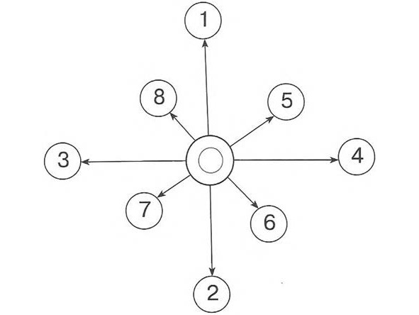Рис. 1. Схема движения острия клинка в восьми направлениях. Из четырех основных и четырех промежуточных