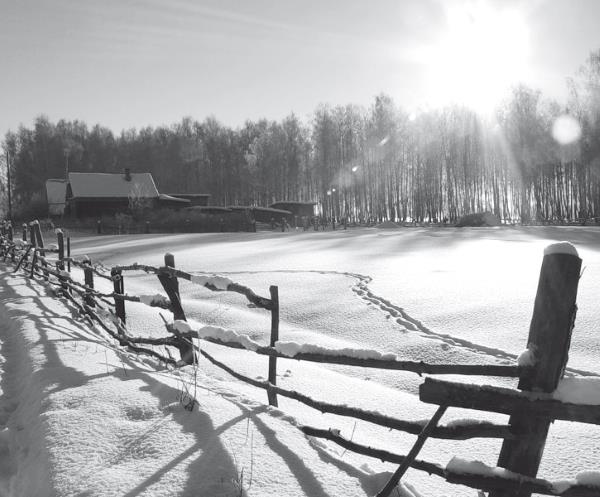 Наш дом в самом конце деревни. На этом краю нет ни одного фонаря. Мы сворачиваем за угол и ступаем в полную темноту. Из-за своих заборов лают собаки. А вон вдалеке и наше окошко, «в окнах огонёк». Там нас ждёт бабушка. Я разгоняюсь и бегу по темноте, и слышу только скрип снега под ногами. Больше никаких звуков и картинок. Тишина и темнота, только мои шаги и моё жёлтое окошко. Это похоже на сказку.