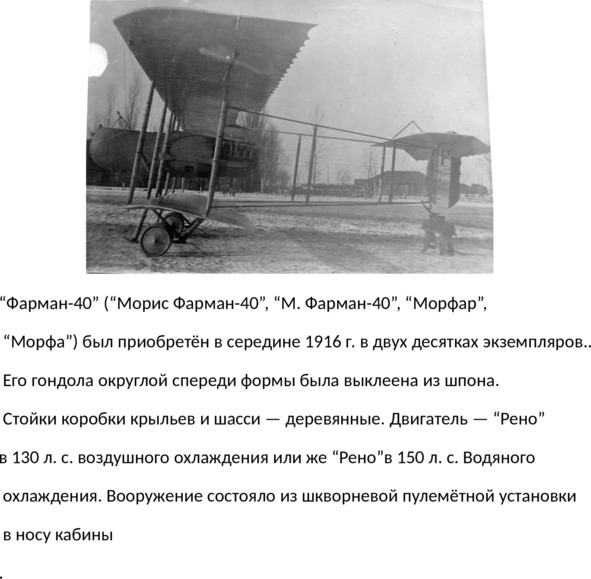 «Ньюпор-X». (Nieuport-X, «Ньюпор», «Ньюпор-Бебе»). Истребитель и разведчик («скаут»). Двухстоечный двухместный полутораплан с деревянным каркасом и полотняной обшивкой, с мотором «Гном» или «Рон» мощностью в 80 лошадиных сил. Завод В. А. Лебедева и завод «Дукс» строили аппараты этого типа по лицензии. Также эти машины поставлялись в Россию из Франции. Основные технические характеристики: длина – 7,1 м, размах крыла – 8,2 м, площадь крыла – 17,6 кв. м., масса пустого – 435 кг, взлётная масса – 610 кг, максимальная скорость – 145 км/час.