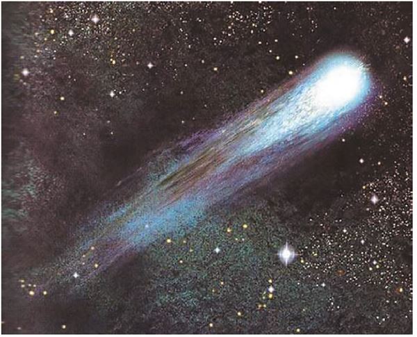 В контексте гипотезы о существовании всепланетарного потрясения нельзя не упомянуть о глобальном катаклизме, причиной которого, по мнению многих исследователей, является комета Галлея[15] (рисунок 2). «…Это произошло, когда Земля начала возрождаться. Шел огненный дождь, земля покрылась пеплом. Камни и деревья были раздроблены… С неба сорвался Великий Змей… и на землю упали его кожа и куски его костей… а стрелы попадали в сирот и стариков, во вдовцов и вдов, которые еще жили, хотя сил для жизни у них уже не хватало. И они нашли себе могилу на берегу моря. Тогда нахлынули ужасные волны. Небо вместе с Великим Змеем рухнуло на землю и затопило ее» («Чилам Балам», V книга). В Библии неоднократно говорится о страшной катастрофе на Земле: «…Окна с небесной высоты растворятся, и основания Земли потрясутся, Земля сокрушается, Земля распадается, Земля сильно потрясена. Шатается Земля как пьяный, и качается как колыбель…» (Исаия 24–18, 20 /3-692/). Аналогичные описания имеются в летописях и эпосах практически всех народов мира. По данным современной науки, в IX–X тысячелетиях до н. э. произошло столкновение Земли с некими небесными телами. По мнению многих ученых, весьма вероятно, это были крупные метеоры – попутчики кометы Галлея.
