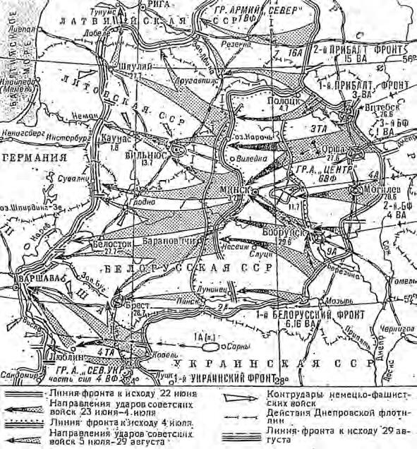 Рис. 1. Белорусская стратегическая наступательная операция. 23 июня – 29 августа 1944 г.