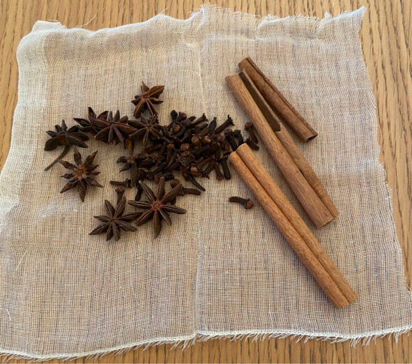– сушеные специи: корица, звездчатый анис, гвоздика, лаванда, кардамон, розмарин, мята, мелисса, тимьян;