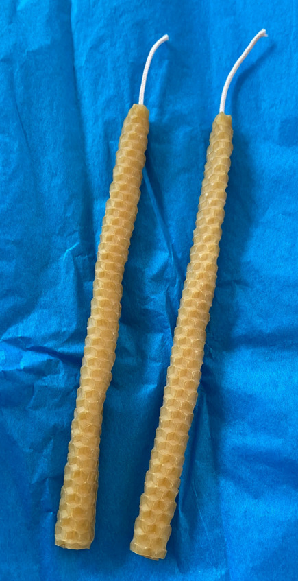 – Скатайте из этих кусков три свечи на хлопковых фитилях.