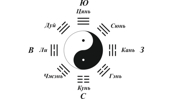 Вначале триграммы располагались по окружности монады в «прежденебесной» последовательности ( в которой не было разделения на пять превращений (У-син). рис. 2.),