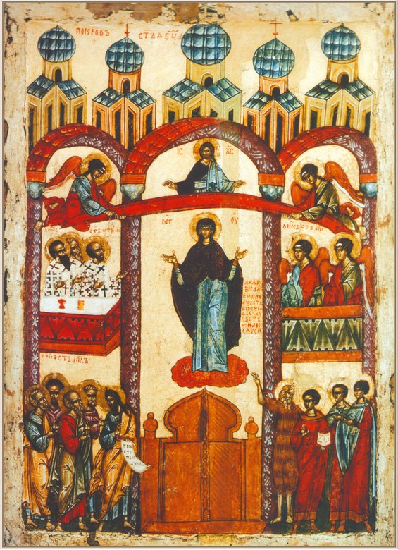Мысль, выразившаяся в этих иконах, для России не нова: она перешла к нашим предкам от греков тотчас по принятии крещения, когда на Руси повсеместно строились храмы Св. Софии. Древнейшая престольная икона новгородского храма Св. Софии относится к XI в. Но всмотритесь в названные мною изображения XV в., и вы будете поражены той необычайной свежестью чувства, которое в них вылилось.