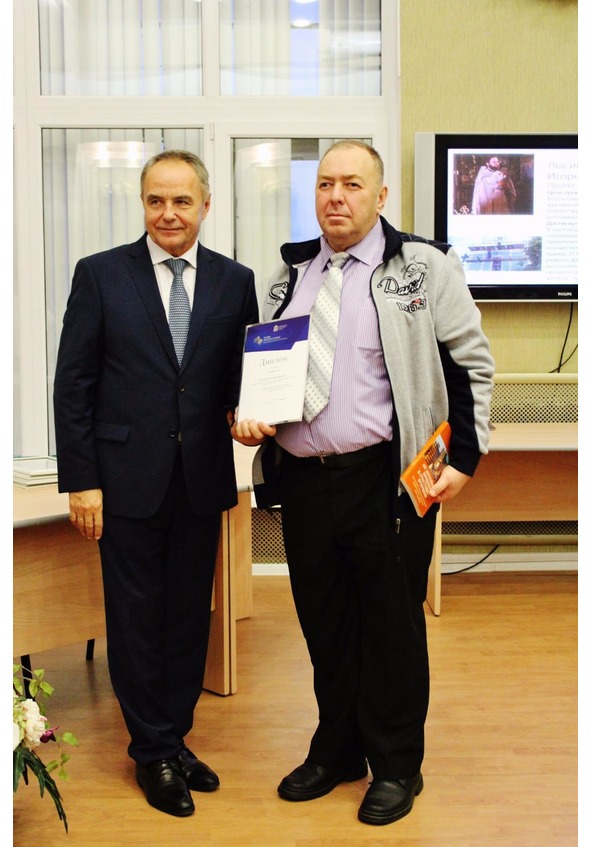Руководителю «Литклуба Трудовая» В.Б. Броудо диплом Лауреата Премии Губернатора Московской области "Наше Подмосковье-2016" ( 2 премия) вручает Глава Дмитровского района Валерий Васильевич Гаврилов, Дмитровская торгово – промышленная палата, 25 ноября 2016 г.