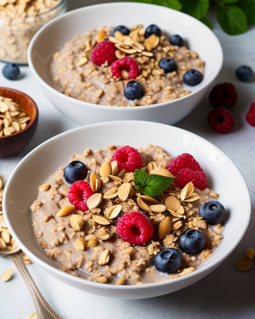 Далее, выложить овсяную кашу в тарелку и добавить свежие ягоды, орехи.