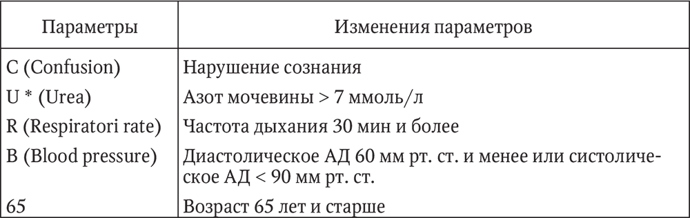 Параметры прогностической шкалы CURB-65 / CRB-65