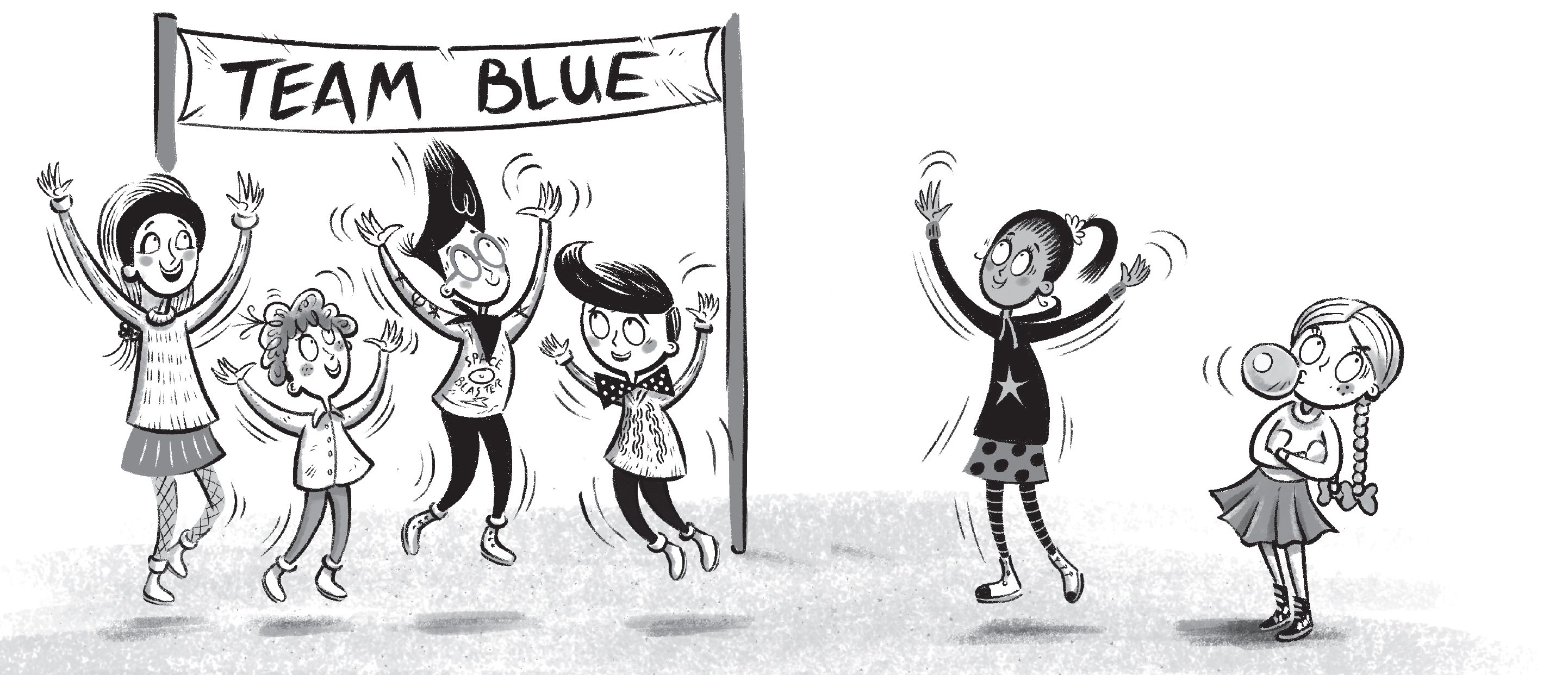 ‘Do I have to be on a team?’ said a girl with two long red braids and about a million freckles who was smacking on pink bubblegum. She blew a giant bubble, almost as big as her face, and popped it with her finger. ‘I’m not really a team player