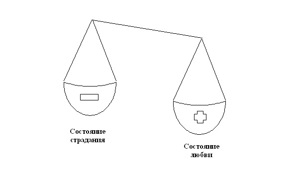 Представляем вашему вниманию теорию весов. На одной чаще мы разместили положительные эмоции, а на другой отрицательные. Положительные эмоции возникают при состоянии любви, а отрицательные эмоции при страданиях (рис 19).