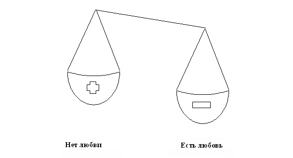 В данном случае (рис. 20) перевешивает чаша человека с отрицательными качествами, потому что чувство любви вызывает много положительных эмоций.