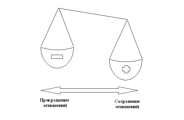 Какое еще положение можно вывести из нашей теории весов? Если в отношениях преобладают положительные эмоции, то они продолжаются, а если отрицательные, то прекращаются (рис. 21).