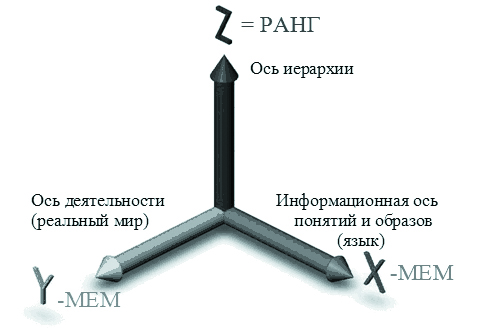 Собственно, в этом и состоит главное отличие человека от животных – в том, что он «написал» для себя большое множество самого разнообразного мемокода. А, поскольку некоторая часть из этих поведенческих программ (предназначенных для повышения своего индивидуального ранга) имела сходное представления о выборе целей(Z) и соответствующей им мотивации(X) в выполнении для этого определенных действий(Y), то мемокод похожего типа естественным образом собирался в общий программный пакет. Обозначим его как: