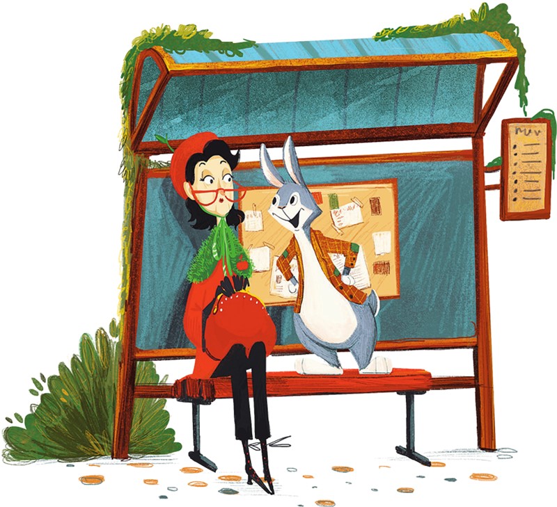 – Скоро наша остановка. Уверена, там можно найти что-нибудь в лесочке, – попыталась она обнадёжить кролика.