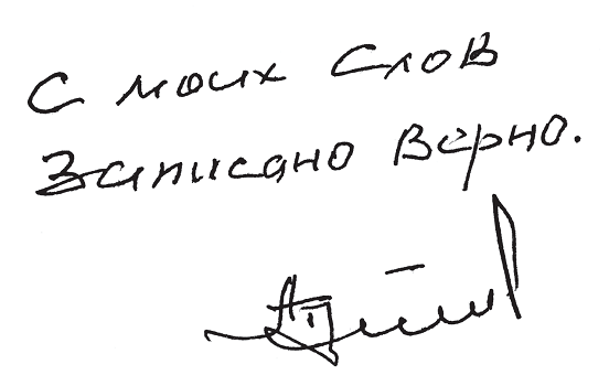 Аман Гумирович прочел его, поправил все, что счел нужным, и вывел на первой странице фразу: «С моих слов записано верно». Она и стала названием.