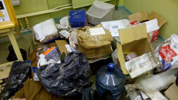 Вот так, например, выглядели «экспонаты» «Музея тайн», которые только что вытащили из коробок. Честно говоря, всё это больше напоминало помойку, всё грязное, мятое, битое. Создавалось впечатление, что со свалки притащили и выложили. Я хочу извиниться перед членами Космопоиска за такие сравнения, но тем не менее, с моей точки зрения, это имело место быть, а я во всём этом копался вместе с другими членами Космопоиска.