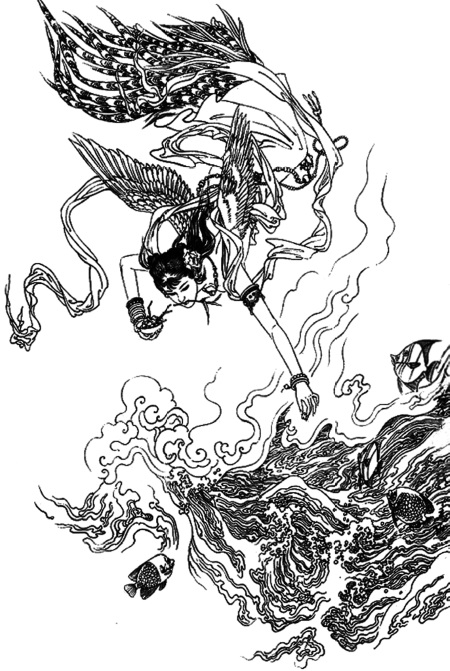 Эту легенду также называют «Цзинвэй засыпает море». Ее можно найти в «Каталоге гор и морей».