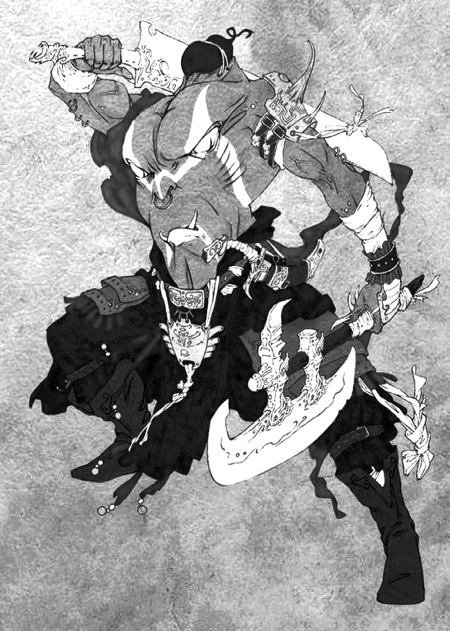Син-тянь лишился головы, однако его соски превратились в горящие гневом глаза, а пупок – в рот, который издавал сердитый рев