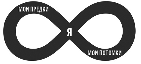 Нарисуйте знак бесконечности. Одна сторона, левая, – наши предки. Там, где пересечение, находимся мы. А вторая часть, справа, – это будущее. По такому быстрому и схематическому рисунку становится очевидно, насколько циклична жизнь. Мои предки, мои будущие дети и внуки – это все я: я в прошлом, я в настоящем, я в будущем.